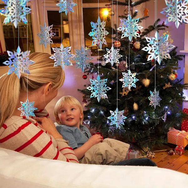 Značilne 3D božične viseče snežinke imajo izvrsten videz, ko so obešene s stropa na hodnikih, vratih ali drugih ustvarjalnih lokacijah, ki si jih lahko zamislite.