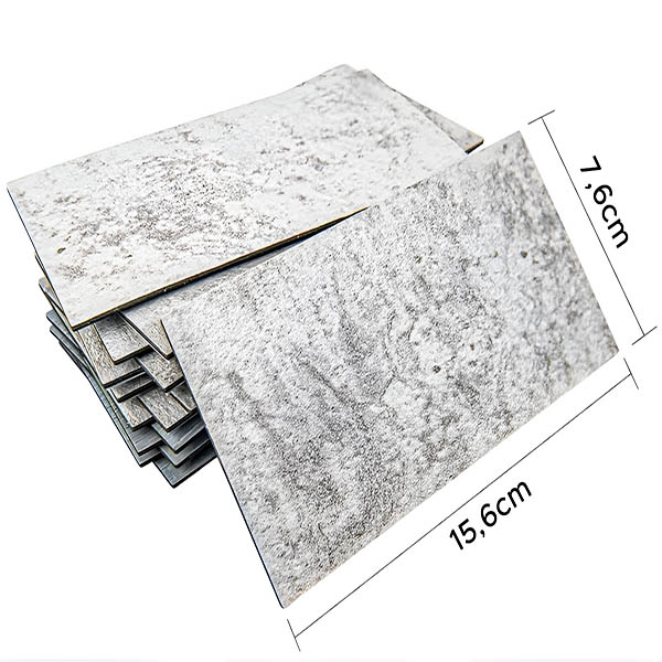 Pravokotna oblika (15,6 x 7,6 cm) omogoča različne privlačne vzorce. Vsako pakiranje 10 ploščic pokriva približno 0,12 kvadratnega metra, kar je popolno za ustvarjalne vzorce.