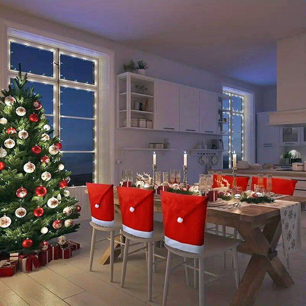 Dodajte božično čarobnost v svojo jedilnico, ne da bi pri tem zapravili celo premoženje! 🎅 Prevleke za stole božičkove kape so primerne za vse stole in prinašajo veselo vzdušje ‘Ho Ho Ho’.” , gala večerje in božične zabave bodo zagotovo navdušile vse vaše goste!