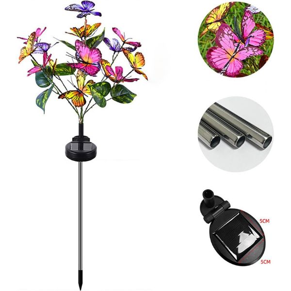 Te vrtne luči na sončno energijo z realističnimi metulji iz blaga in večbarvnimi pravljičnimi LED lučkami bodo zagotovo osupnile in navdušile vsakogar. S svojim edinstvenim dizajnom dodajte svojemu vrtnemu ambientu pridih čarobnosti. LED luči so energetsko učinkovite in oddajajo topel, vabljiv sij.