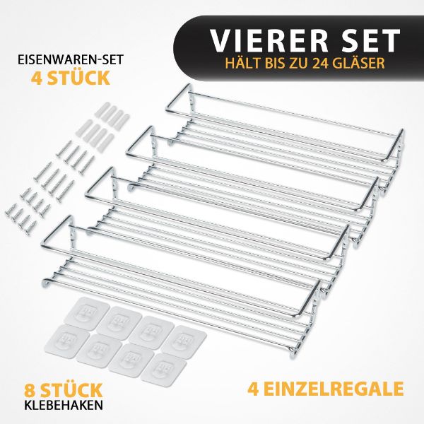 Deco Haus Komplet 4 kovinskih polic za začimbe – kuhinjski regali, organizator začimb, stojalo za začimbe, kuhinjski organizator – montaža z lepilom ali vijaki – srebrna barva