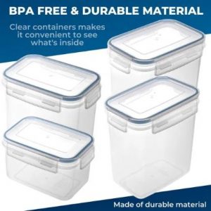 Te posode za shranjevanje imajo pokrove s štiritočkovnim zapiranjem in se zapirajo na vseh štirih straneh, tako da ne boste imeli težav z razlivanjem.