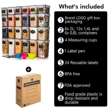 - VEČJA VREDNOST ZA VAŠ DENAR – Denar, ki ga boste porabili za te posode, bo res dobro porabljen denar. Vsak komplet dobite v čudoviti škatli s pisalom, praznimi nalepkami in merilnimi skodelicami.
