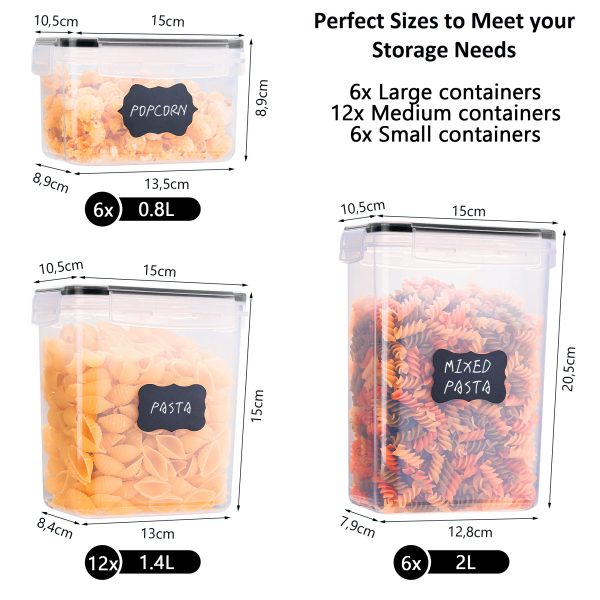 Naš 24-delni komplet vsebuje različne plastične posode različnih velikosti za različne potrebe v kuhinji. V vsakem paketu boste prejeli 6 kosov naše 2-litrske posode, 12 kosov 1,4-litrske posode in še 6 kosov manjše 0,8-litrske posode. Odslej se bo vaša kuhinja uredila sama!