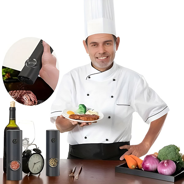 Izboljšajte svoje jedi s svežim vonjem in okusom sveže mletih začimb. Naš električni mlinček vam zagotavlja stalen dostop do popolnoma zmletih začimb.