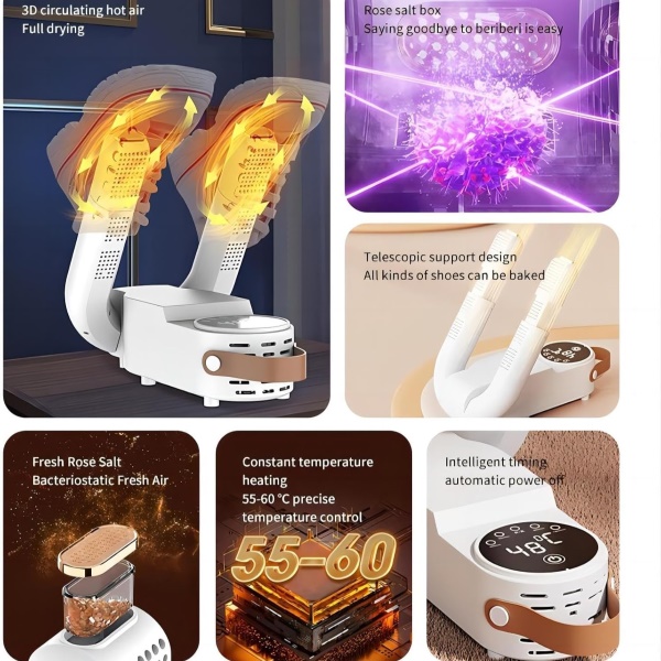Dvojni toplotni izhodi hitro posušijo vaše čevlje v samo 15–30 minutah brez poškodb.