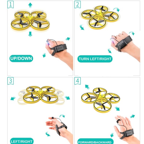 2. Zavrti: pritisnite gumb na prstu. Dron se bo vrtel glede na vrtenje roke