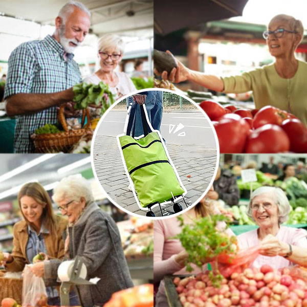 Nič več razlitja! Dno tega nakupovalnega vozička ima visokokakovostno desko z zložljivimi kolesi in ročajem proti zdrsu, ki zagotavlja stabilnost in varnost. Vaša živila bodo ostala na mestu, tudi ko boste na poti. Nedrseča zasnova zagotavlja, da se lahko samozavestno premikate po vseh površinah, ne da bi vas skrbelo, da se bo vaša torba prevrnila.
